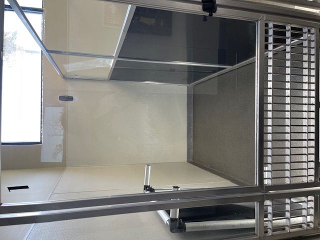 - Cabins - For our 30 lb and under furbabies that need more privacy, these glass-front cabins are spacious and have a comfortable blanket to sleep on.